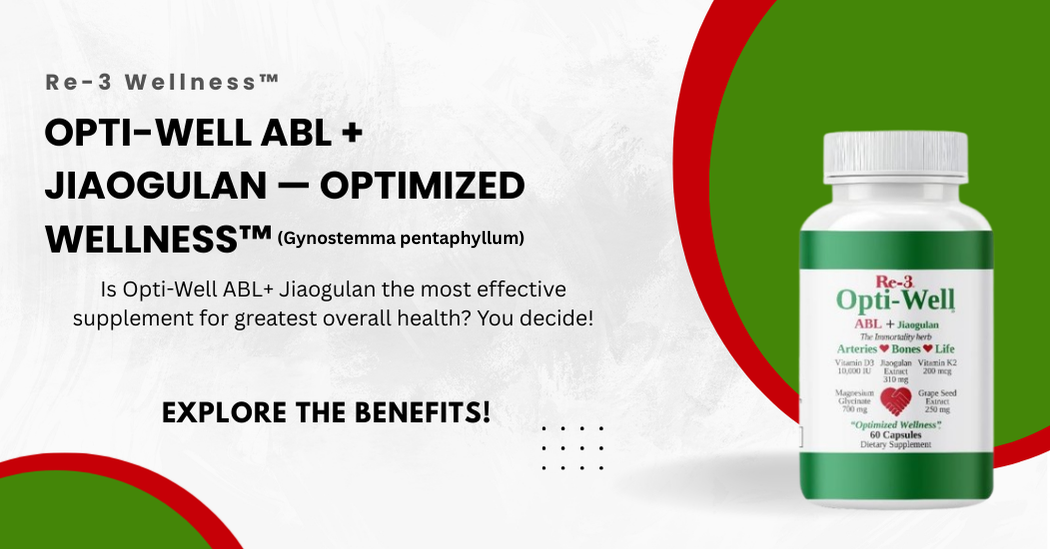 Re-3 Wellness is a wellness innovation company dedicated to creating the most effective, science-backed supplements for healthy aging, vitality, and overall well-being. Our flagship product, Opti-Well ABL + Jiaogulan, is a patent-pending breakthrough that delivers unparalleled health benefits—designed to meet the growing demand for effective wellness solutions.